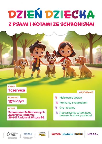 Radomskie Towarzystwo Opieki nad Zwierzętami zaprasza wszystkie Dzieci wraz z Rodzinami na Dzień Dziecka w Schronisku dla Bezdomnych Zwierząt.
